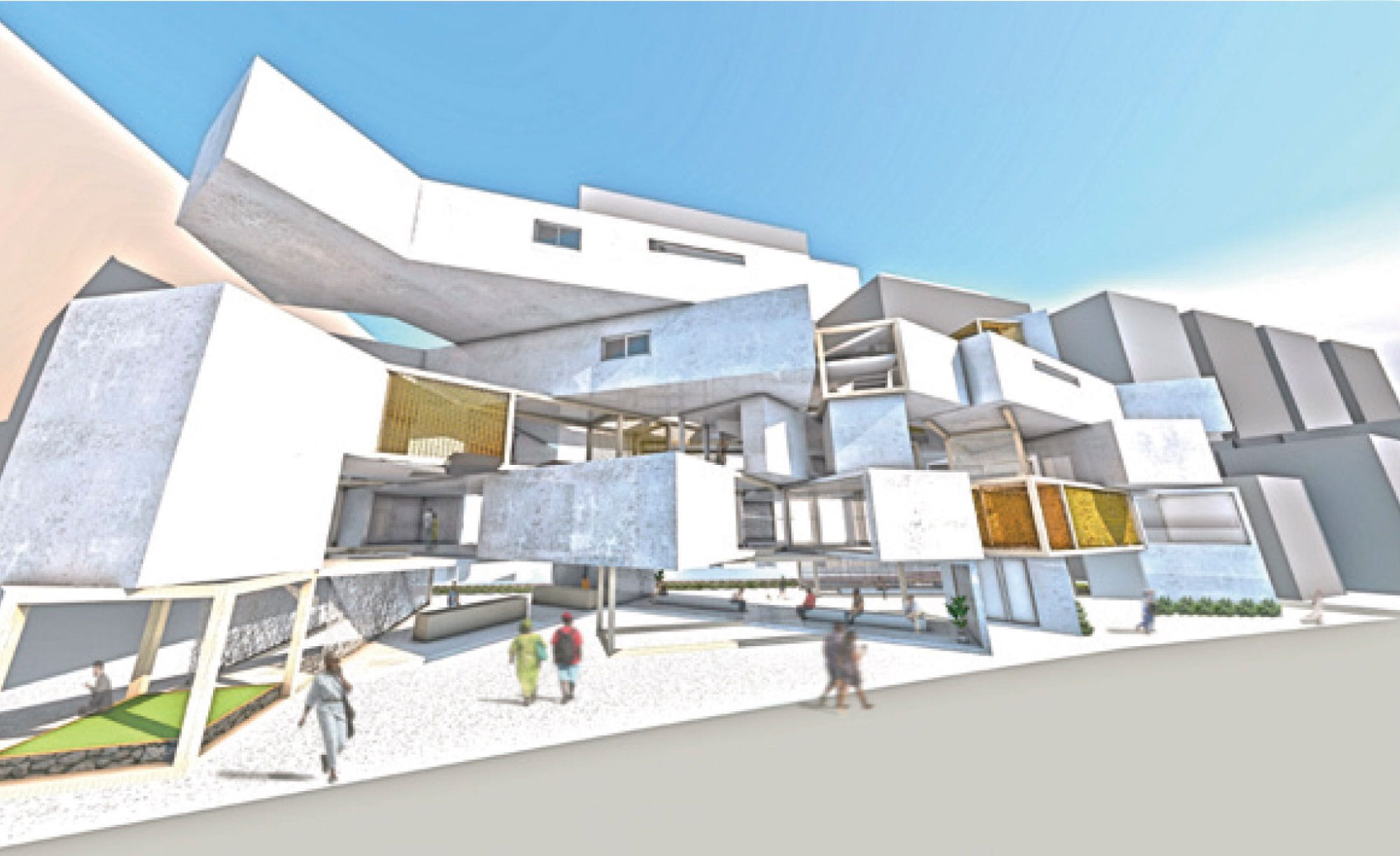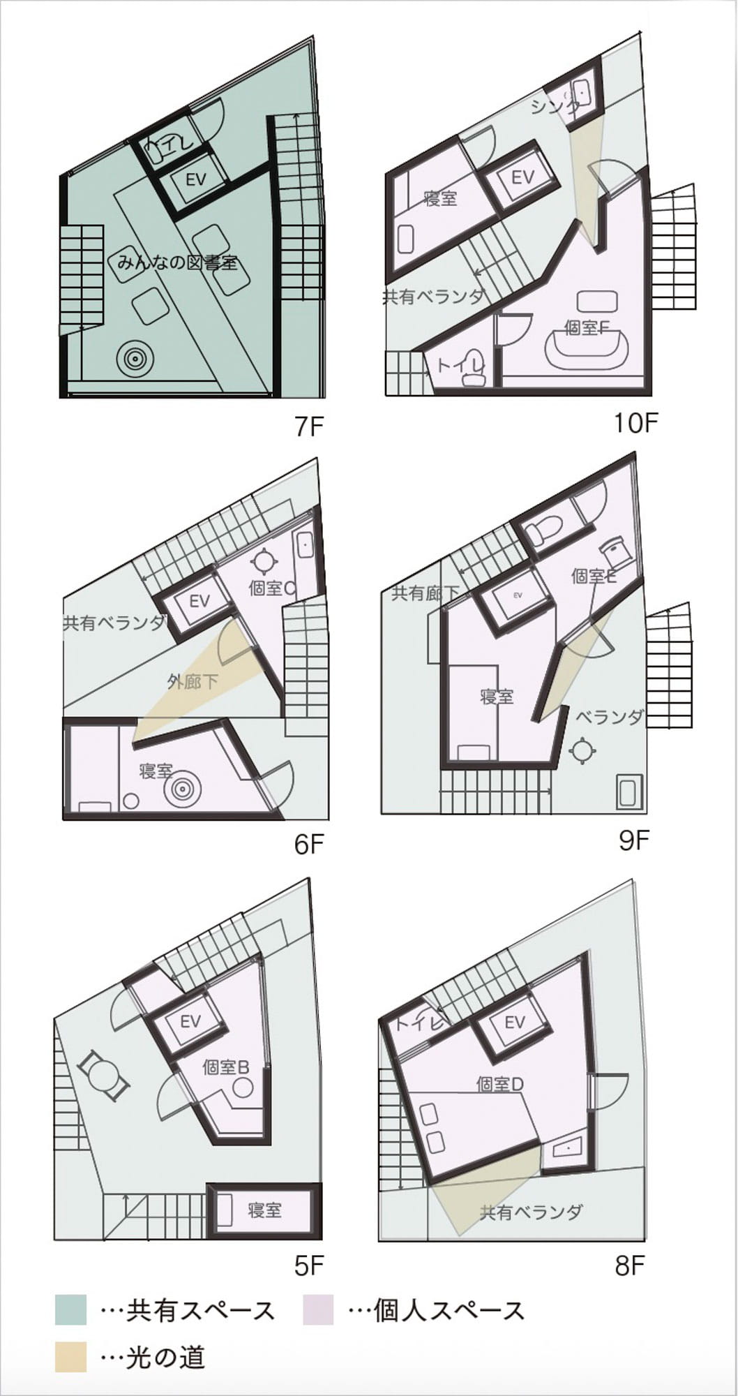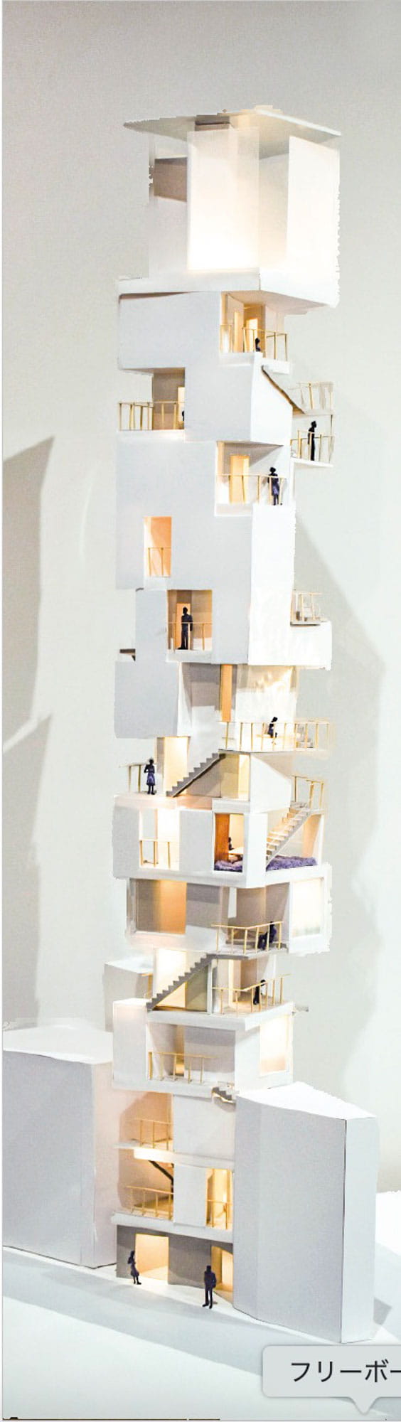 - 人と人との出会いや交流が生まれる建物の隙間を「伱間(すきま)」と名付ける。タワー型の独立した住空間の間に、本棚で構成された空間を差し込むことで、個人と街との新たな関係性を生み出し、街並みにも緩やかなつながりと広がりをもたらすことを目指す。この「伱間」」は、都市生活者のプライバシーを守りつつ、来訪者が立ち寄れる「交流が生まれる専門書店」として機能する。また単なる商業施設ではなく、日常に溶け込む暮らしの一部となり、本を介して趣味を深めたり、偶然の出会いや新たな発見を生み出す場となる。
