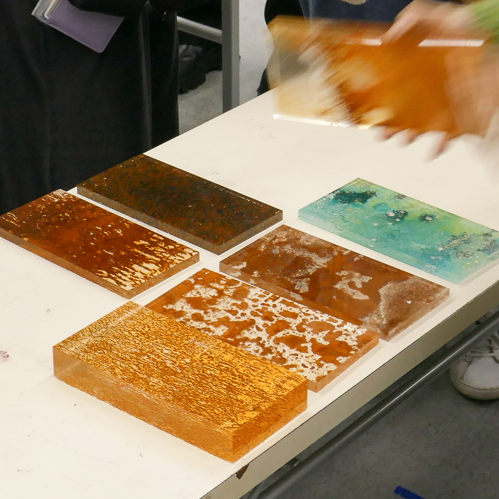 近年、狩野さんは素材に目を向けたアプローチをしており、それはRust harvestを境に目の前で起きた現象を自分の手で調整して作り上げていく作業が自分には合っていると感じたそうで、そもそも昔からPCソフトの操作やCADでの作図作業が苦手でコンプレックスだったが、それらが使えないことを自分の強みだと発想を転換したらすごく可能性が広がり、Forest BankやPoop to Tile Projectにもつながったとのこと。