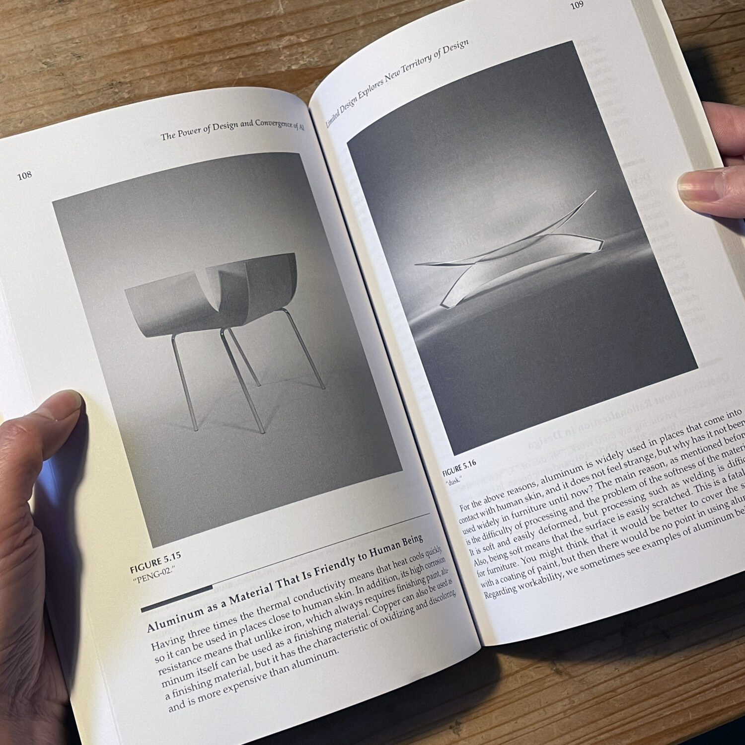 大松先生は、第5章で「Limited Design Explores New Territory of Design」という論文を写真も含め25ページ程度で書いており、2018年から継続して制作しているアルミニウム製の椅子の制作に関するお話をもとに、昨今のデザインの動向を語っています。