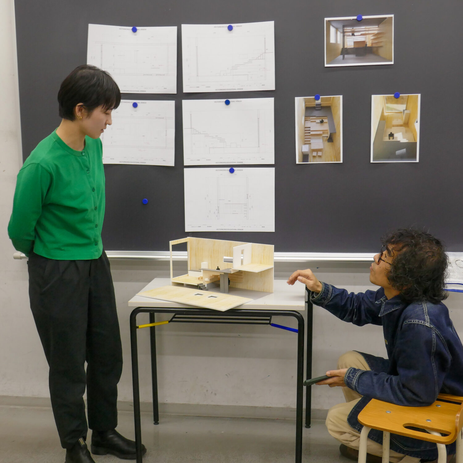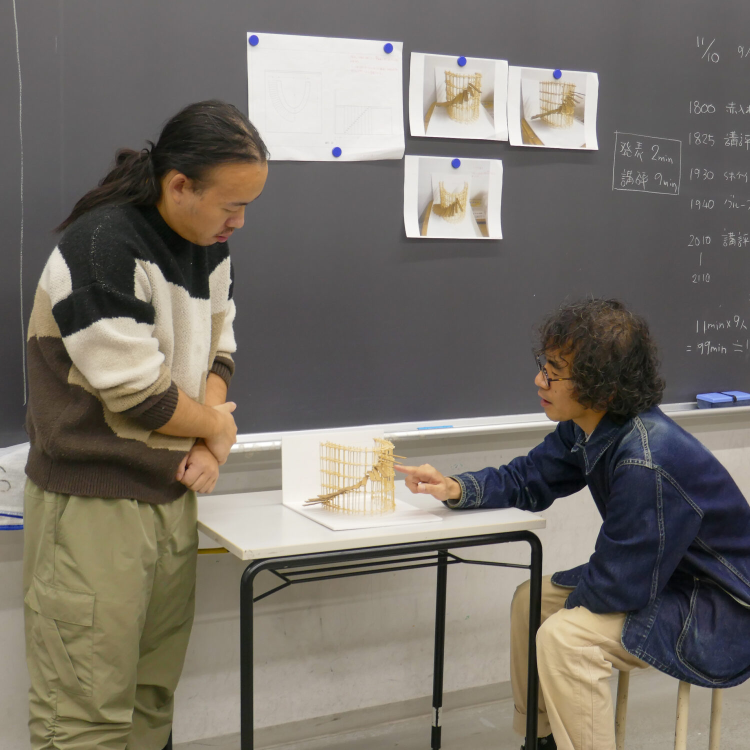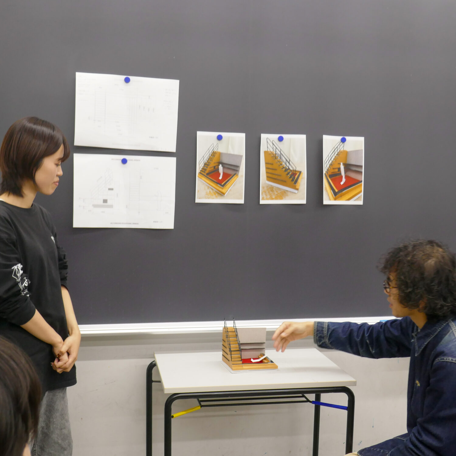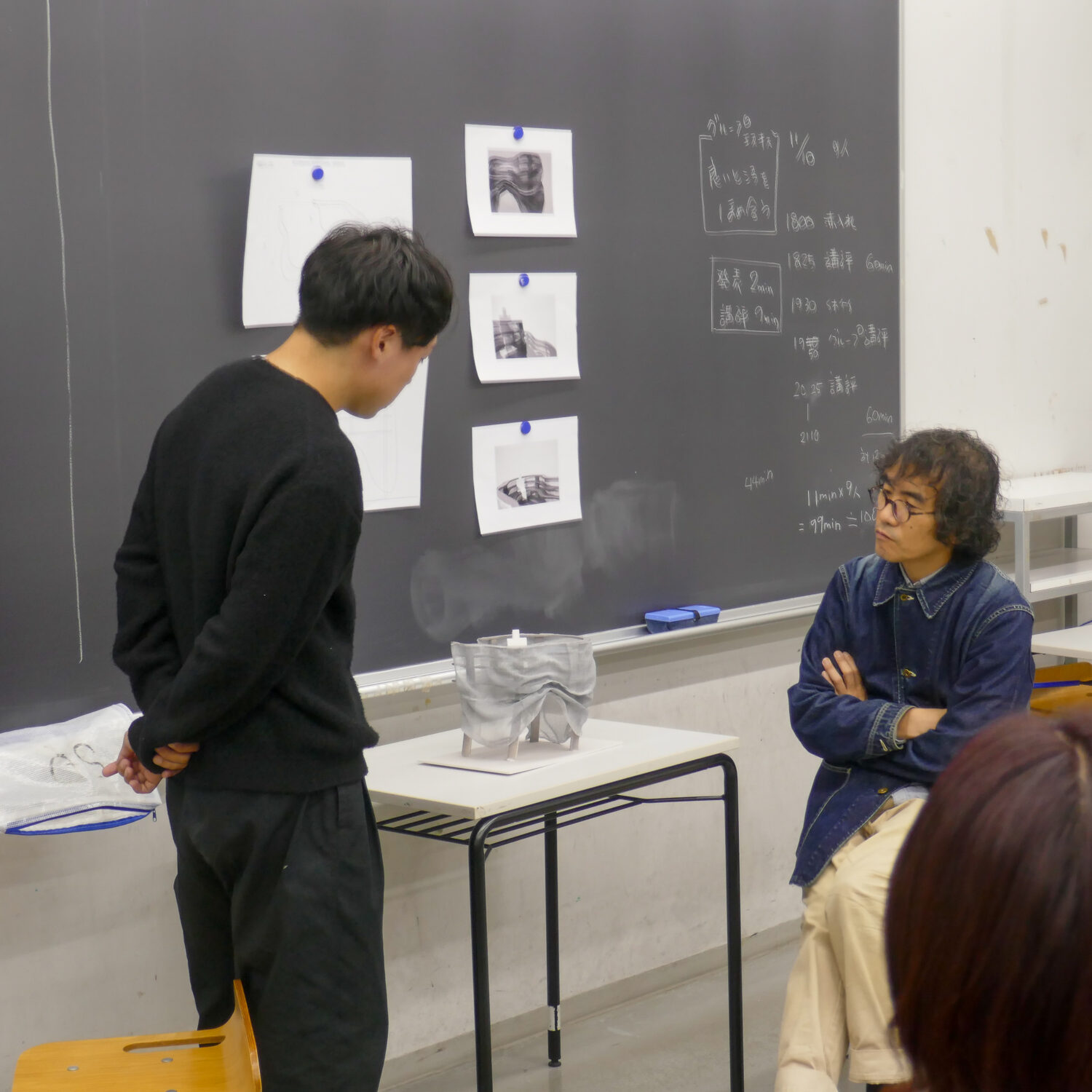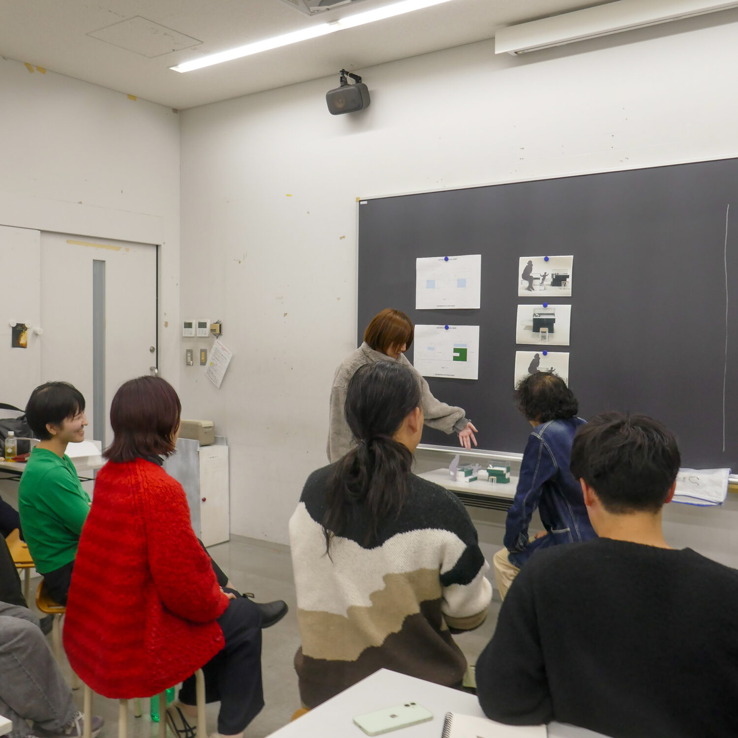 発表を始める前に、各自成果物に対して足りなかったところや見直したいと思うところを考える時間を設けてから、先生の講評を受けたことで、学生たちも次の最終講評会に向けてどこを詰めていくべきかが明確になりました。