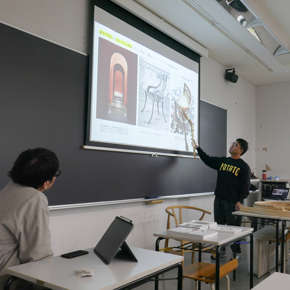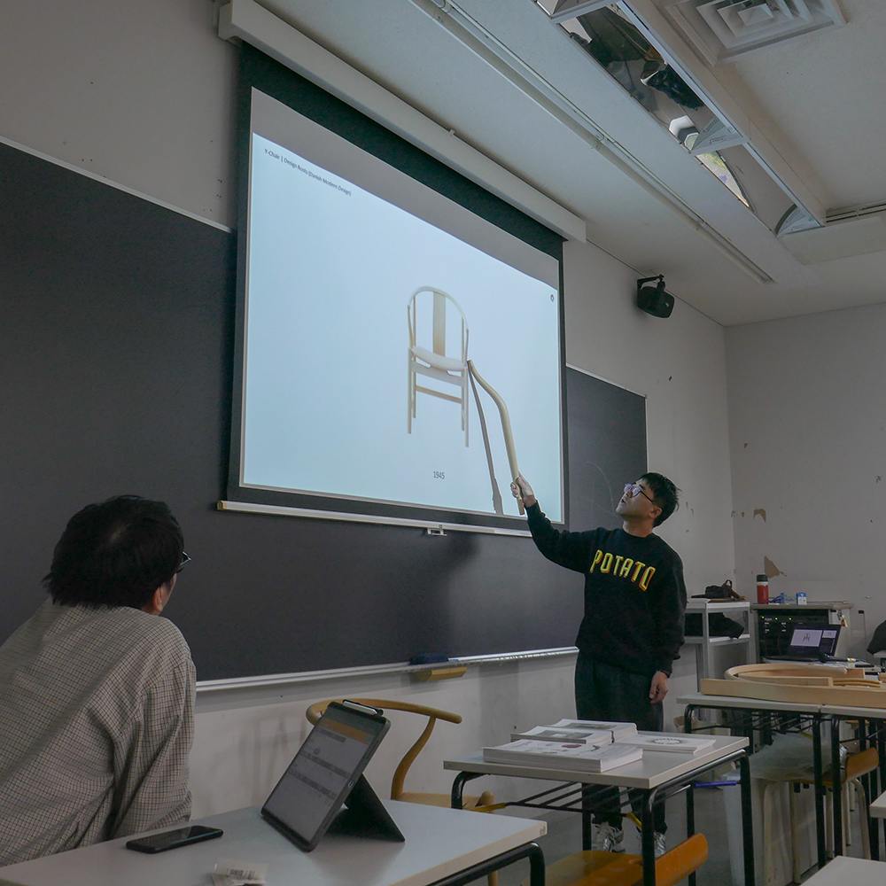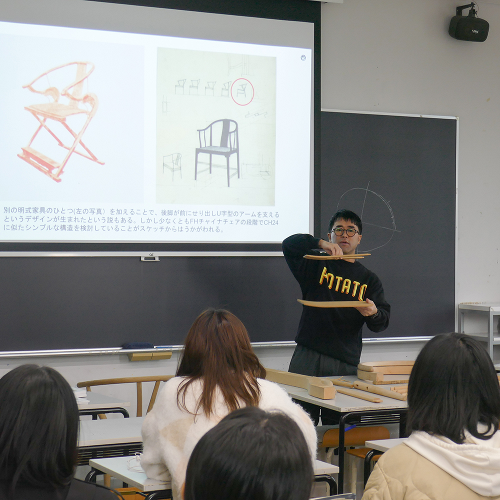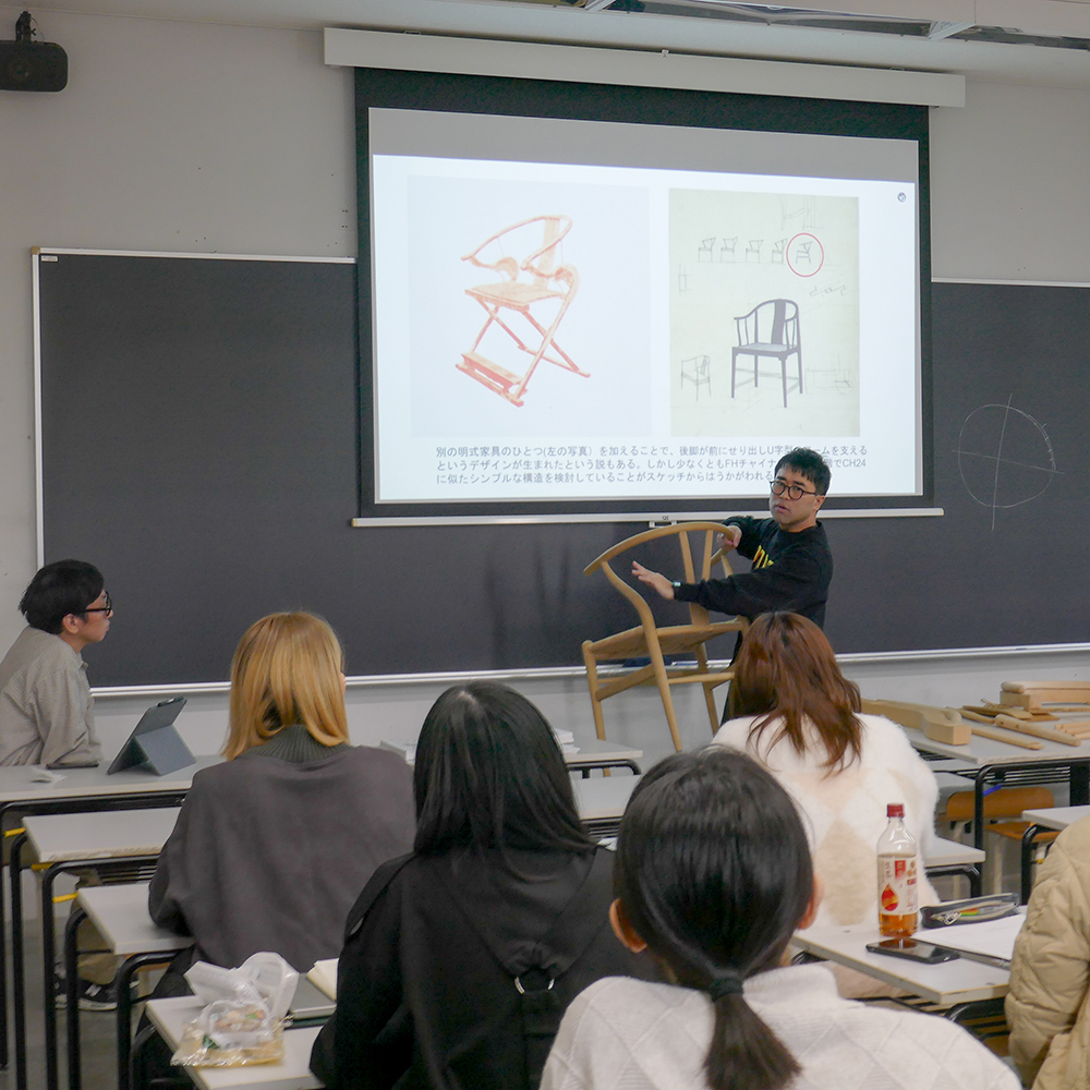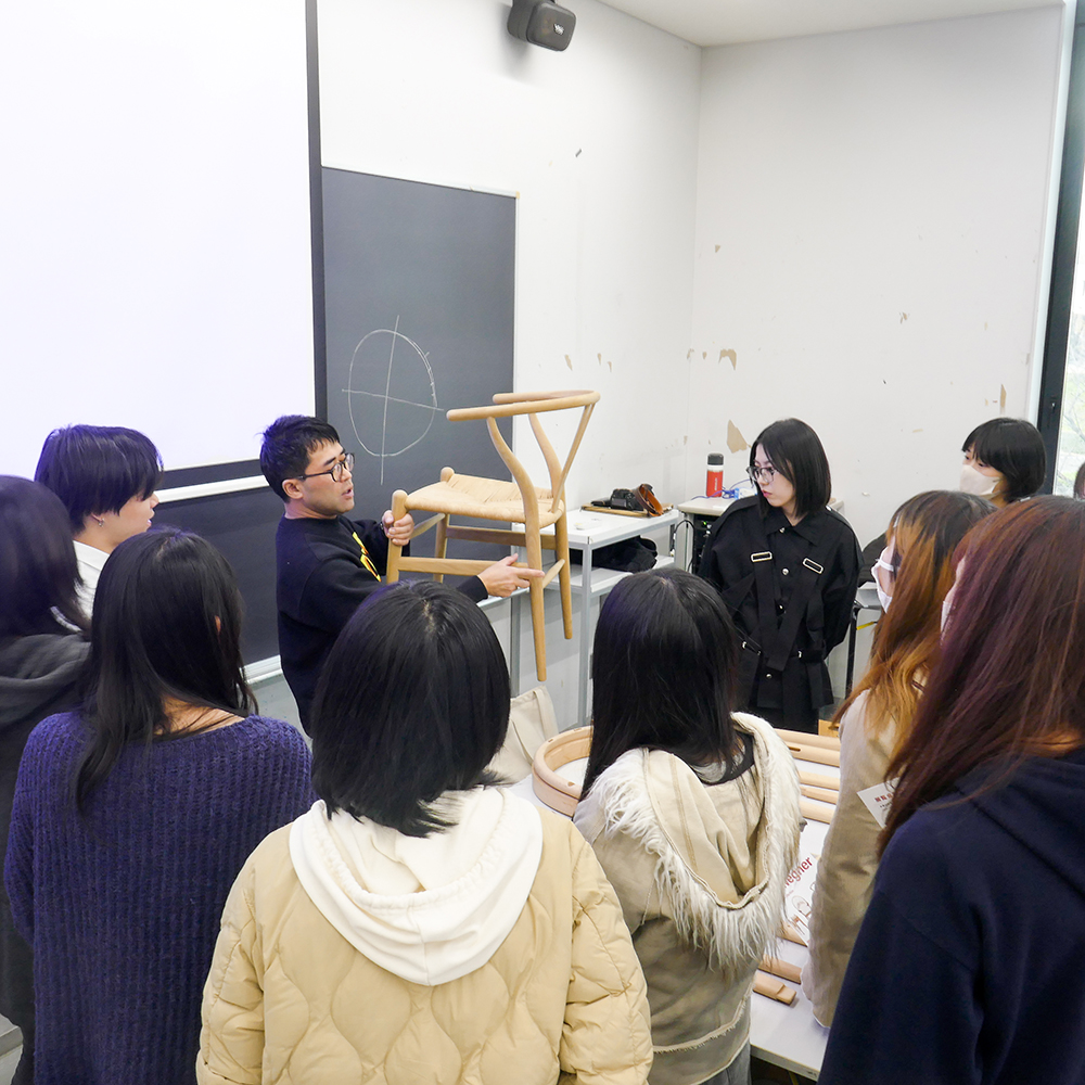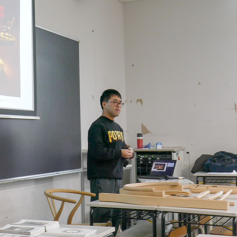 12月11日(木)1限目の昼間部2年生「エレメントデザイン概論」(佐々木達也先生)では、ゲストにCarl Hansen&Sønの郡司圭さん( https://www.carlhansen.com/ja-jp/jajp)をお招きして、レクチャーしていただきました。