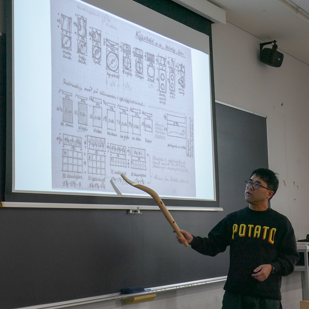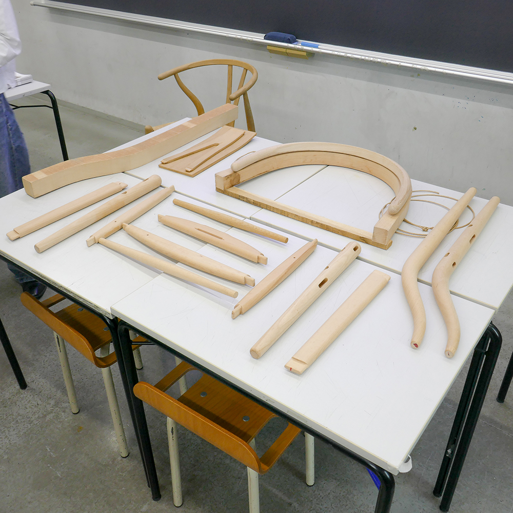 当日はCH24 Yチェアの作者であるハンス・J・ウェグナーの生い立ちや過去の作品、実際のスケッチなどスライドで紹介して頂きました。またデンマークの国に関してや、デンマークの国民が大事にする「Hygge(ヒュッゲ)」という概念についてなどもお話しして頂きました。さらに今回特別にCH24 Yチェアを1脚と組立てパーツを持参して頂き、目の前でパーツの解説と実際の組立てを見ることができとても貴重な時間となりました。