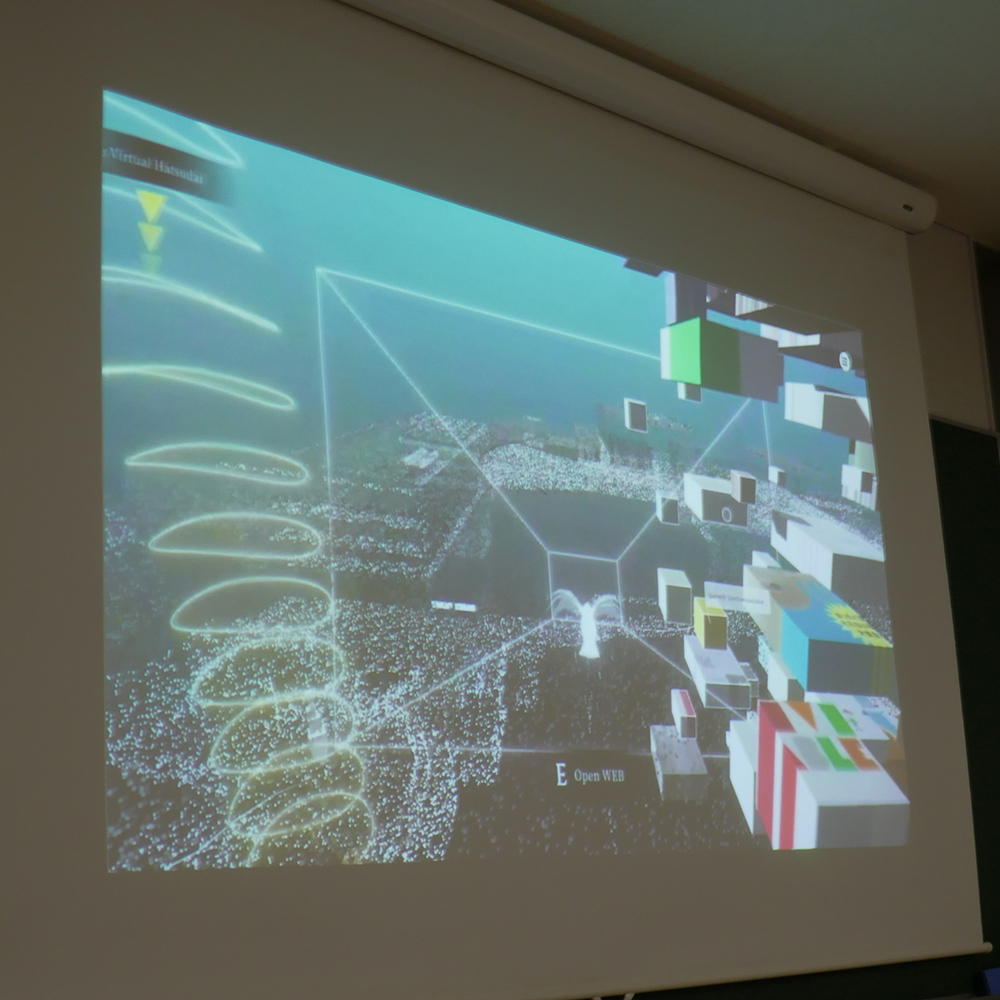3つ目にコロナ禍以降のメディア・アートの在り方について。コロナ禍の外出自粛の期間、展覧会が次々に中止となる状況が続く中、展示空間を3Dスキャン(Matterport)したものをオンラインで再現し、閲覧者は隅々まで空間を見渡すことが出来たそうです。これこそ最高のアーカイブであると畠中さんは語り、これまでの展覧会アーカイブは記録写真でしか保存されておらず、空間そのものの記録を残せた新しい方法になったと仰っていました。コロナ禍が終わり、舞台やコンサートといった「生」を大事にする分野のオンライン、バーチャル化は衰退したものの、展覧会空間は、フィジカルな空間だけではなくバーチャルな空間にも拡張しているとのことです。