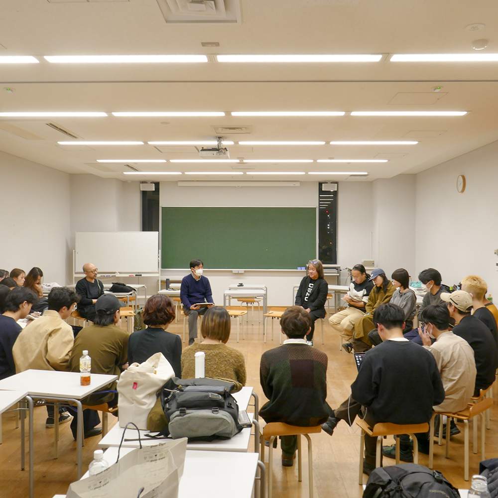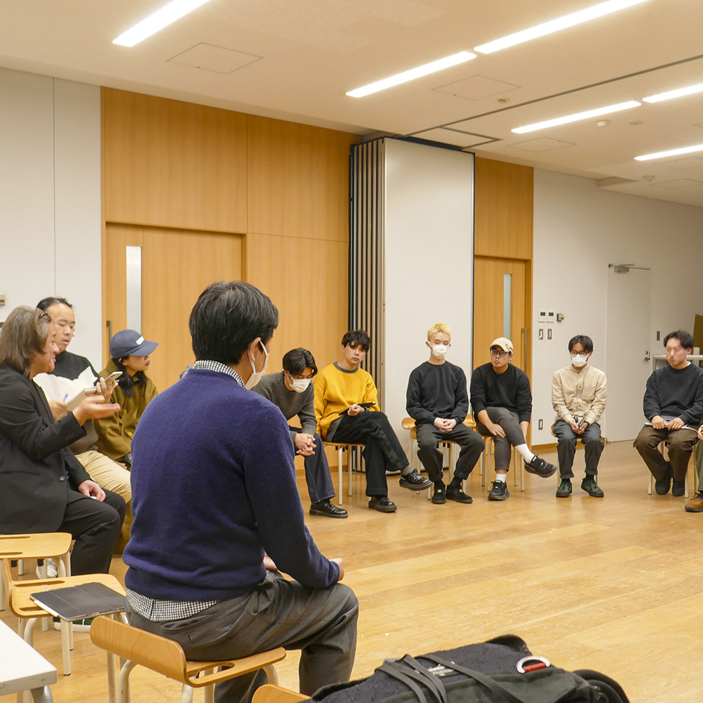 また後半の円座になっての学生との質疑応答では、今の学生はメディアアートをどのように感じているか、AIのこれから、世代による物の所有欲について、など世代間で異なる感性を共有し、学生と先生方、お互い新たな気付きとなった。