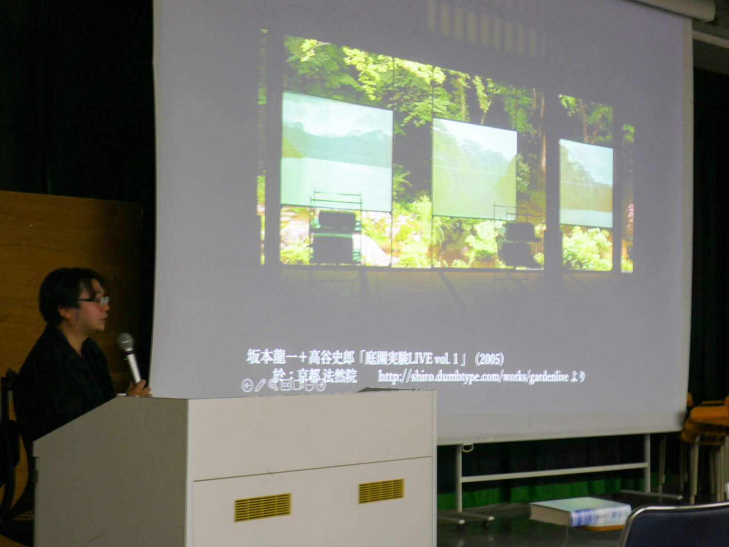 原さんは高校生の時に坂本龍一さん+高谷史郎さんが京都の法然院で開催した実験ライブ「庭園シリーズVol.1」を体験したことがきっかけで日本庭園や古い物と新しい物の融合に興味を持っていったそうです。