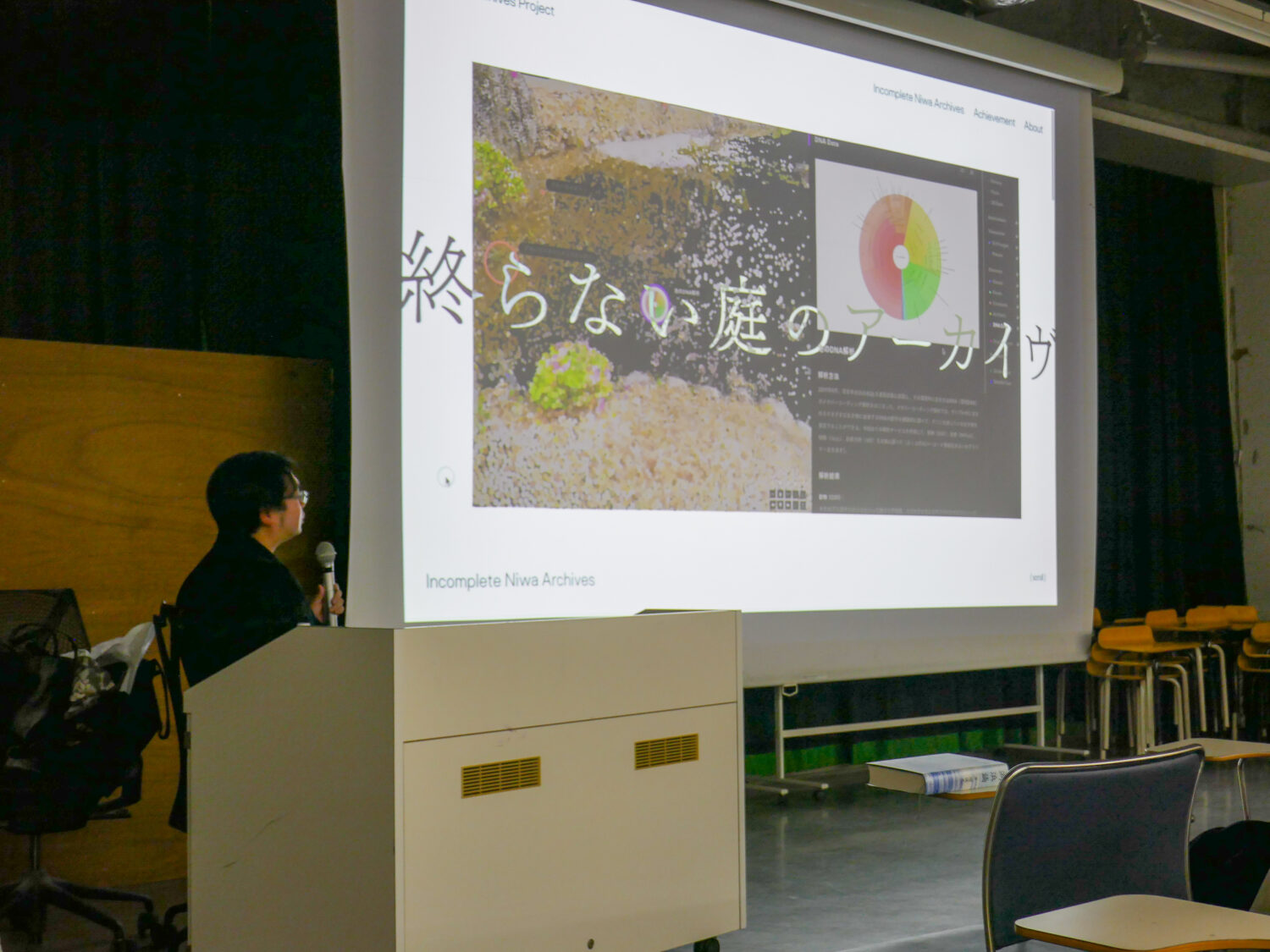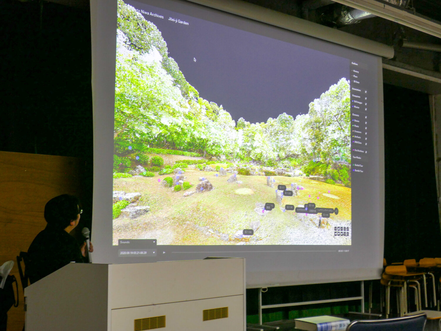 また、原さんの活動の一つである「終わらない庭のアーカイヴ」というプロジェクトもご紹介頂きました。この活動は、石・水・植物など常に変化をしているものから構成される日本庭園をなるべく動的なアーカイヴを作って残していくことを目的とするもので、庭園を3Dスキャンや高解像度の撮影録音をしたものをWEB上で閲覧することが出来ます。