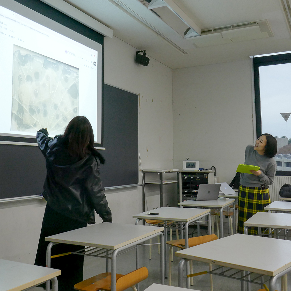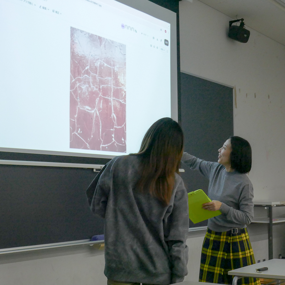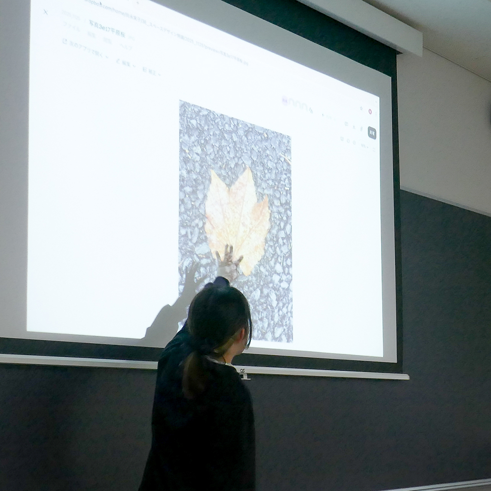 11月25日(火)昼間部3年生の「スペースデザイン特論」の授業では、ライター/地図デザイナーの杉浦貴美子先生にお越し頂きました。授業の前半では先生のルーツやこれまでの地図作品をスライドで紹介してもらい、その後「街で見つけた地図のようなもの」を探してくる課題を出しました。学生たちは学外に出て、時間内に地図のようなもの(どんなものでも可)を探し写真と撮り、授業の後半に1人ずつ発表しました。発表ごとに先生は「どこの地図のイメージか」を確認しながら、学生たちの想像力をさらに刺激して頂きました。