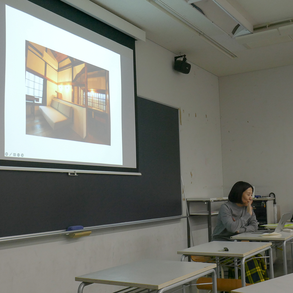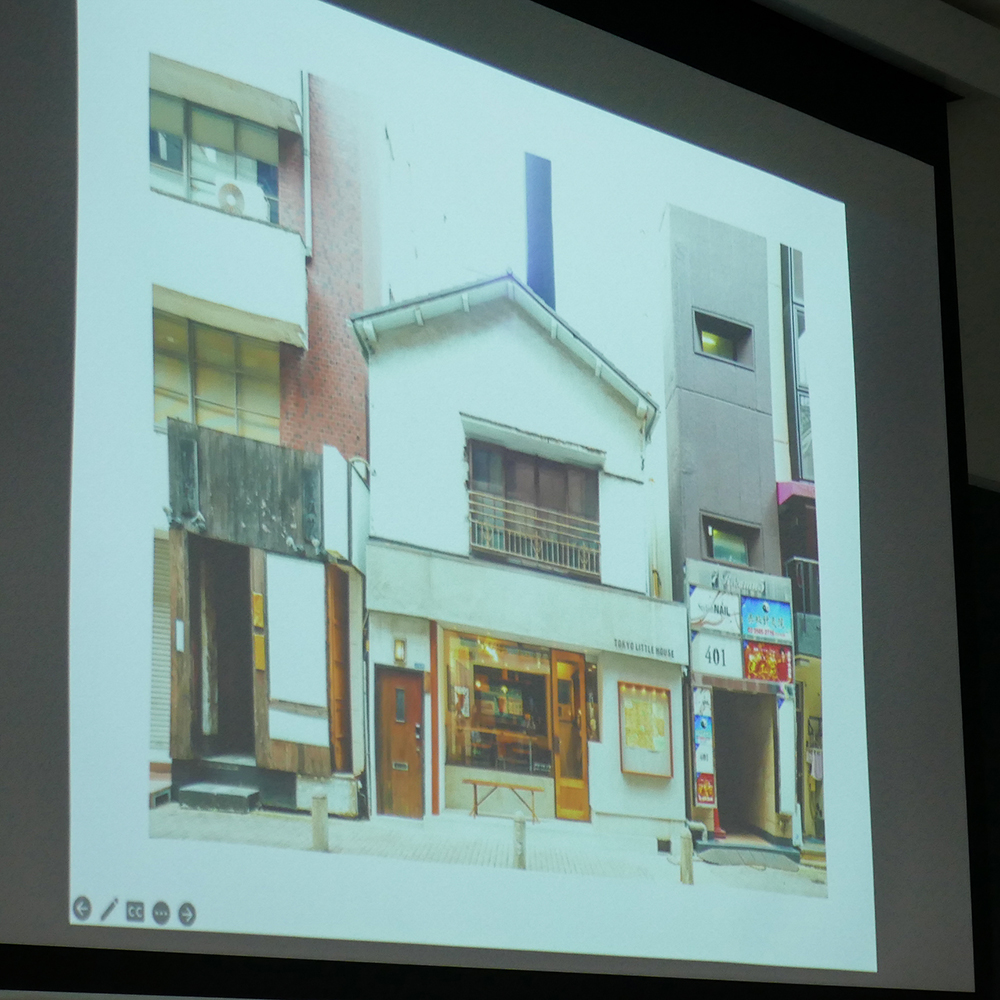 授業の最後でほ、先生が運営するTokyoLittleHouse(https://littlehouse.tokyo/)のお話をしていただきました。TokyoLittleHouseは赤坂にある宿泊施設(1室のみ)で、中にはカフェ、展示空間、編集室が併設されています。築70年の民家を先生自身で改修工事し、2017年から営業しているそうです。